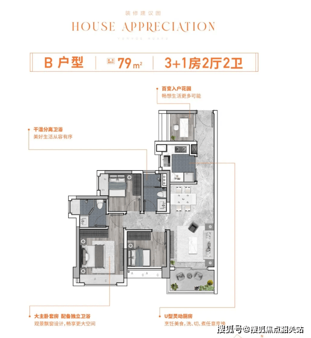 高实用率户型:设计合理,79平方米可实现3+1房布局,适合刚需家庭。