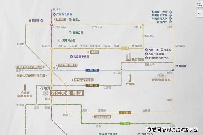 瑧园项目附近有花地湾TOD枢纽,1号线和25号线在此交汇换乘。项目距离最近的地铁花地湾站约800米,步行仅需12分钟。从芳村TOD可换乘11号线和22号线,其中11号线被称为广州地铁线网的“换乘之王”。自驾出行也非常便利,周边有花地大道、龙溪大道等主要线路,可以快速到达广州各个区域。