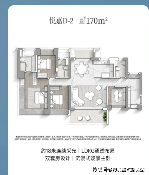 项目住宅涵盖110-300㎡不同户型段,主要为四房设计,多开间朝南,符合改善型家庭需求。二期6栋180㎡全新户型,仅42套,布局LDK一体化开间达6米,可拓展至约9米,公共空间超过80㎡,实现客厅、书房、餐厨与双阳台的通透设计。