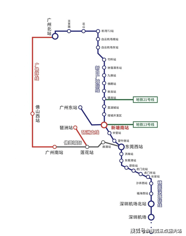 誉山国际的交通优势显著,临近新塘TOD交通枢纽,拥有10条轨道交汇(包括5条地铁线、3条国铁路线和2条城轨)。其中,地铁13号线新塘站和穗深城轨的新塘南站已经通车,方便居民快速到达天河区、白云机场和广州北站等地。此外,步行即可到达直线距离约1.5公里的新白广城际永宁南站,进一步增强了其交通便捷性。