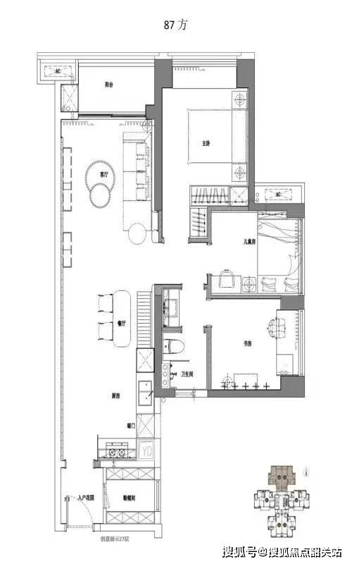 项目目前在售产品均为毛坯交付,给予业主充分的装修自主权。主力户型包括87㎡三房、97㎡三房及117㎡四房,各具特色:
