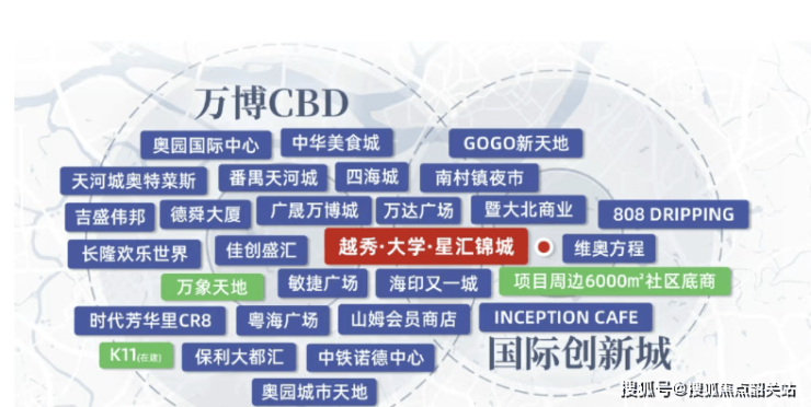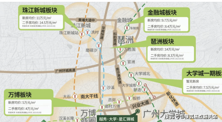 1. **占据城市黄金位置**:越秀大学·星汇锦城选址番禺南村板块,紧邻国际创新城,西距万博CBD仅8公里,北距大学城10公里,处于“产业发展轴+生活配套圈”的双重利好辐射范围。从资源集中度来看,项目虽不处传统老城芯,但依托板块发展红利与交通路网,周边配套正加速成熟。医疗资源上,2公里内有南村医院(二级综合医院)可满足日常诊疗,3公里可达广东省第二人民医院番禺院区(三级综合医院),应对突发健康需求更有保障;政务服务方面,1.5公里内的南村镇政务服务中心,可便捷办理社保、户籍、营业执照等业务,无需跨区域奔波。商业配套虽以社区底商为基础,但通过南大干线、南沙港快速等主干道,20分钟内可直达万博商圈的万达广场、天河城、山姆会员店等高端商业体,既能享受成熟商圈的消费便利,又避开了城芯的高房价与拥堵问题。此外,项目临近国际创新城,未来将承接更多科创产业人口的居住需求,区域资源集中度与居住价值将持续提升,成为刚需群体“低门槛入住、近享繁华”的优质选择。