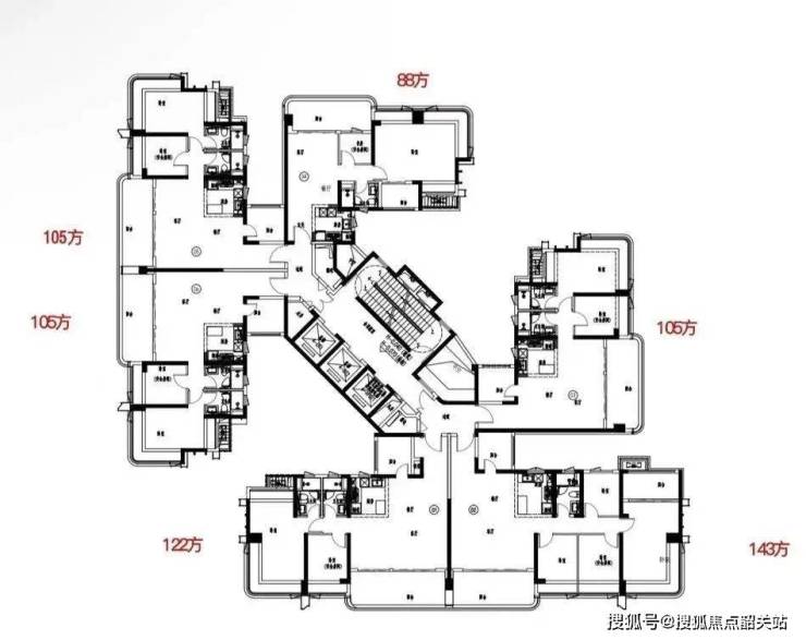 6个户型,朝向分别为:88平朝西北,2个105平朝西南,122平和143平朝东南,还有一个105平朝东北,不分户型大小,全都是3.05米层高