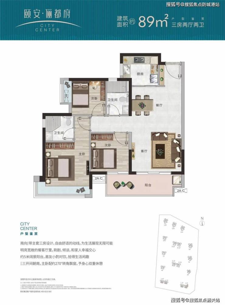 户型设计:89-138㎡三至四房,南北通透,得房率超85%。