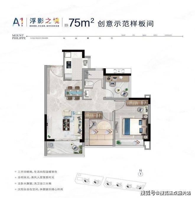 住宅户型设计科学合理,二房、三房及四房布局充分考虑空间通透性与生活动线,南北向采光充足,客厅与卧室相互独立,保障居住舒适性。主卧配备套间及飘窗设计,增加居住舒适感及采光效果。