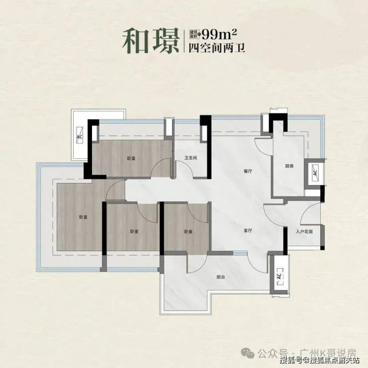 四开间朝南已经是基操了,卧室全部南向归置,厅房阳光景观平权。