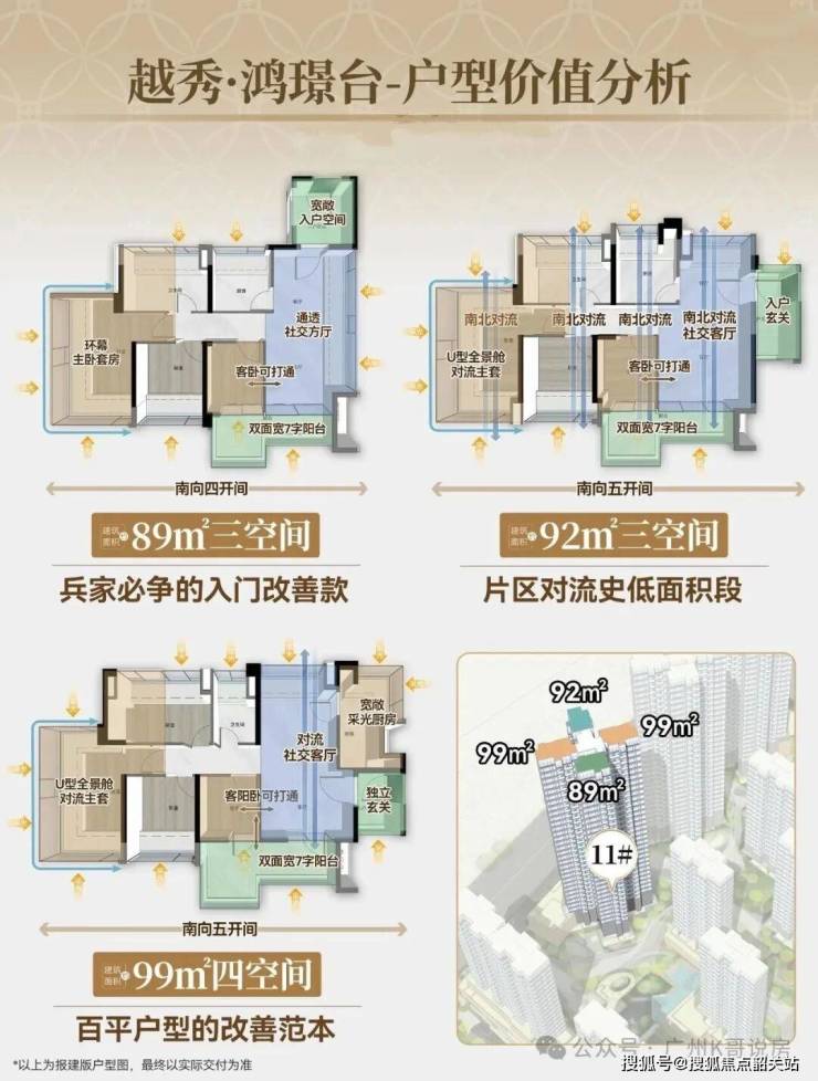 主推建面约89-122㎡三四房,全南向新规户型