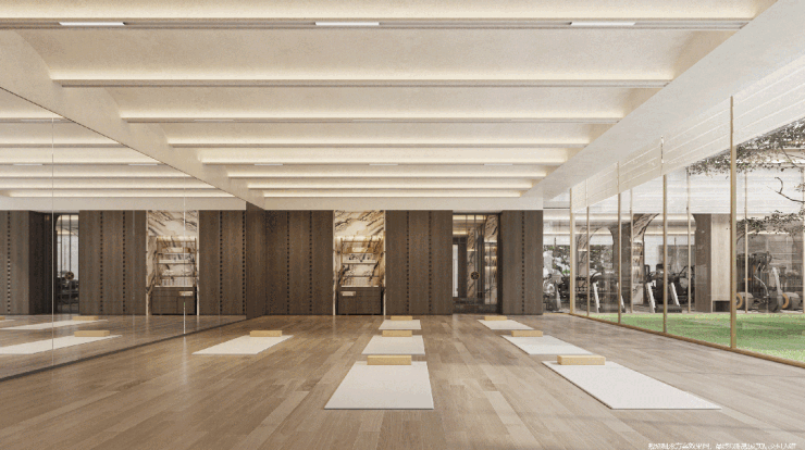 悬浮游泳池,置身其中宛如度假;室内篮球场,更是赛事级别的;会客区、健身房、瑜伽室,通通都有。