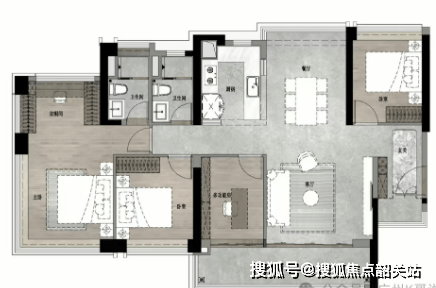 双面宽阳台兼顾家政休闲双功能,景观舱主卧小家化,阳光衣帽间、360°环幕景观。
