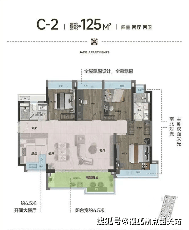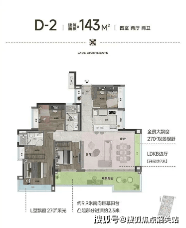 户型:95-143㎡精装3-4房,方正格局+全飘窗+横厅设计,实用率与景观视野双双拉满