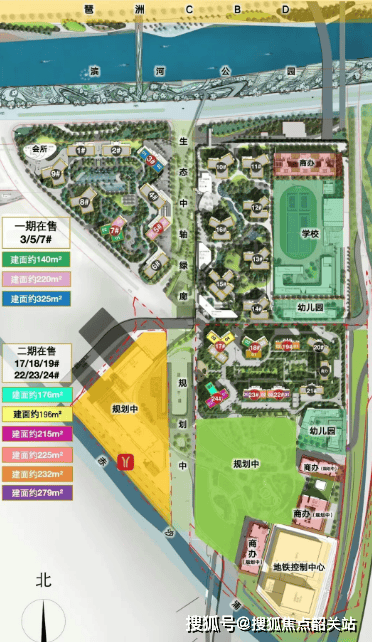 项目位于海珠区琶洲南金运路 1 号,与互联网企业总部云集的琶洲西区仅一涌之隔。由广州地铁与越秀集团联合开发,总占地面积 240000㎡,总建筑面积约 980000㎡,规划 24 栋住宅共 1780 户,总层高 15-66 层不等。小区绿化率 30.5%,建筑密度 26.52%,配备 2801 个车位,物业费为 5.5 元 /㎡/ 月,保障高端居住体验。