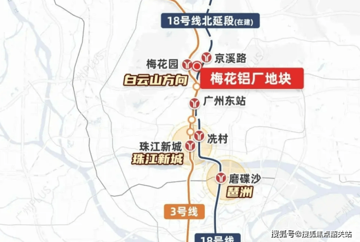 在建18号线北延段京溪路站(预计2026年开通),1站至广州东站,3站至琶洲