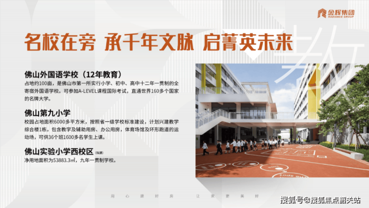 教育配套上,项目周边名校环绕,形成了一站式教育体系。项目自身配套 18 班幼儿园,为孩子提供了优质的学前教育环境。佛山外国语学校(12 年教育)、佛山第九小学、佛山实验小学西校区(拟建)等学校为孩子的基础教育打下坚实基础。从幼儿园到中学,长达 15 年的优质教育资源,让孩子在家门口就能享受到良好的教育环境,为孩子的成长成才奠定坚实基础。同时,丰富的教育资源也提升了区域的文化氛围,为业主的生活增添了更多的人文气息。
