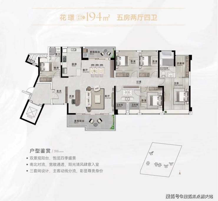 【194㎡五房2厅4卫(三套房)】南北对流双景观阳台,观景生活两不误