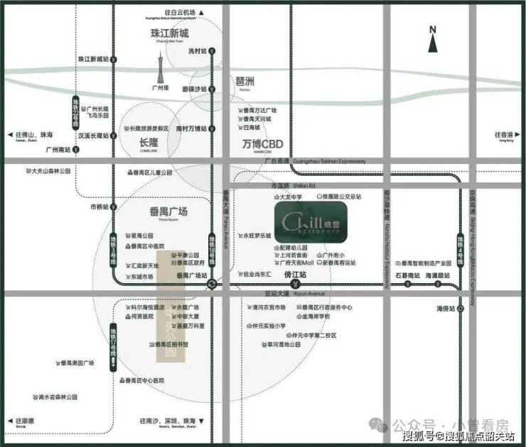 保利琅誉,位于“番禺广场+番禺客运站”双TOD上,与3号线东延段傍江站(在建中)直线距离约590米,一站即达番禺广场站:地铁3号线、18号线、22号线、3号线东延段(在建中) 、17号线(规划中),五轨交汇,一站畅行琶洲,两站通勤珠江新城。