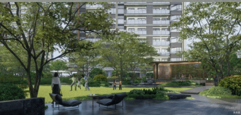 - **社区园林**:项目**整体抬高11米**,点式塔楼布局,30%绿化率,**内外双园**,视野开阔、静谧舒适。