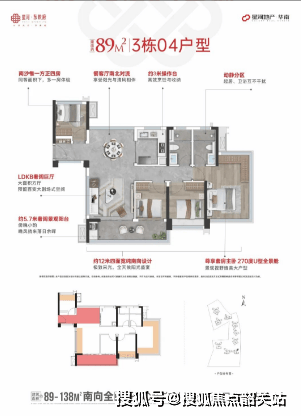 - **样板间**:**89㎡四房、123㎡五房、138㎡双主套**实景开放,**128%使用率**,南北对流、全明通透、南向大面宽、LDK一体化、主卧套房、阔景阳台,空间利用率极高。