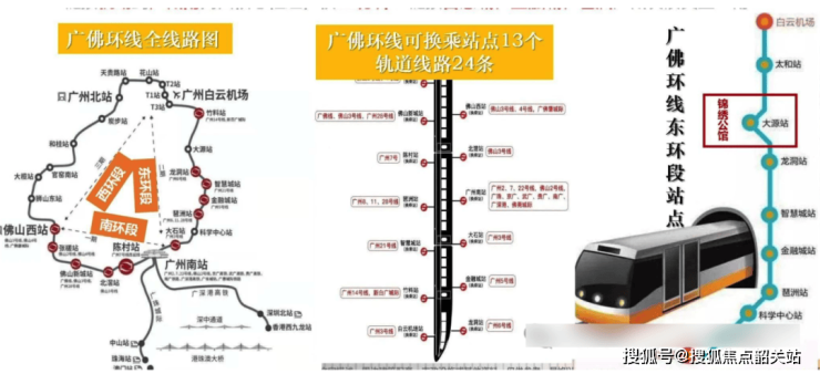 广佛环城际线大源站:距离项目约800米,连通机场与广州南站。开通后从大源站出发,1站到达天河,4站到琶洲,8站经换乘可达珠江新城,约25分钟可到广州南站。