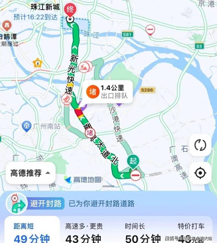 自驾去珠江新城:亚运大道转番禺大道,再上新光快速,全程28公里,耗时50分钟左右,上南沙港快速时间也差不多。
