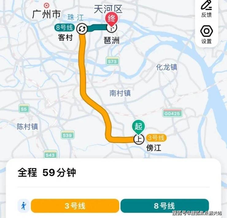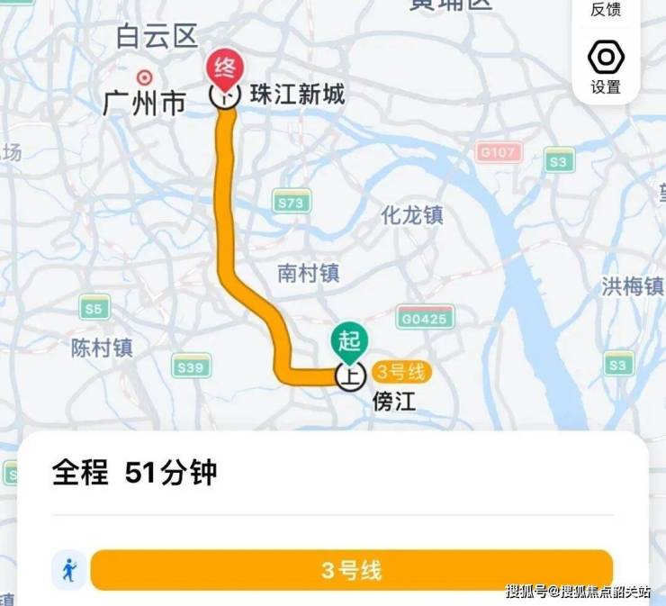 地铁去往珠江新城:家门口步行到傍江地铁口,乘坐3号线直达珠江新城,全程10个站,耗时51分钟左右。