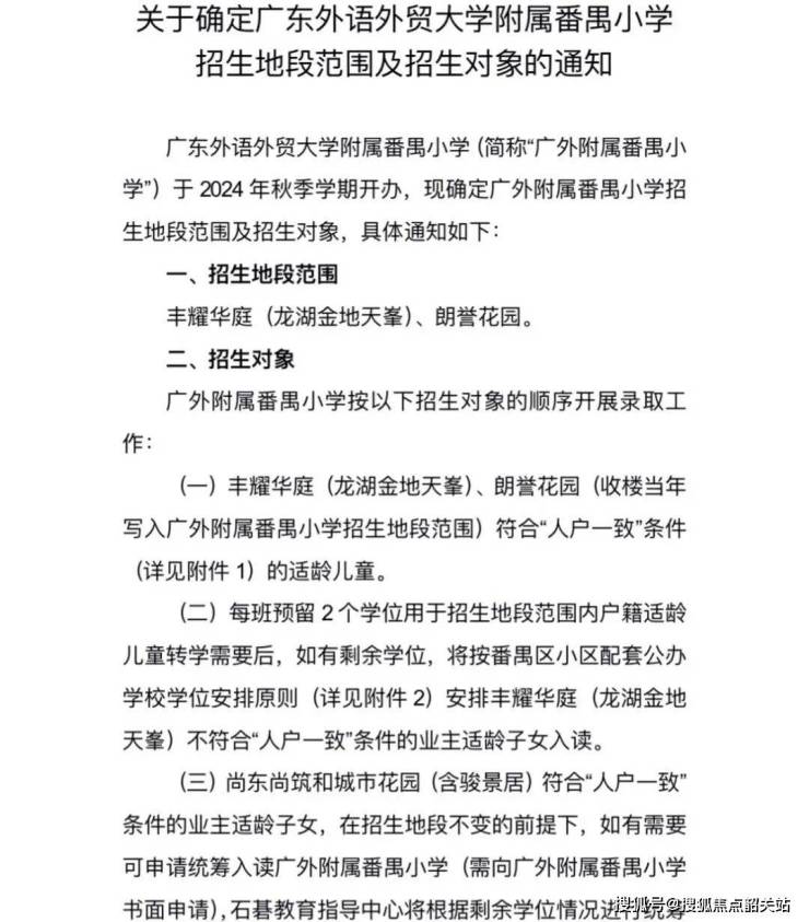 而且根据今年教育局公布的地段分组,琅誉业主子女可以统筹入读广外附小了