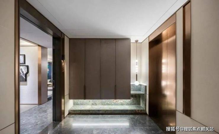 五进宅院,邂逅尊贵入户仪式。穿过园林,进入宅院,闯入眼帘的又是双重格调入户大堂,首层大堂,悬挑香槟金铝制艺术雨篷,搭配巴西“蓝珍珠”石材,勾勒出了雅奢大气的入户门面。