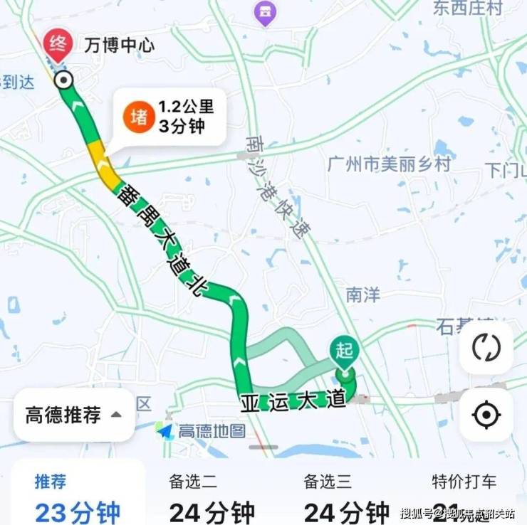 自驾去万博:出小区上亚运大道转番禺大道北,去万博12公里车程,耗时23分钟左右。