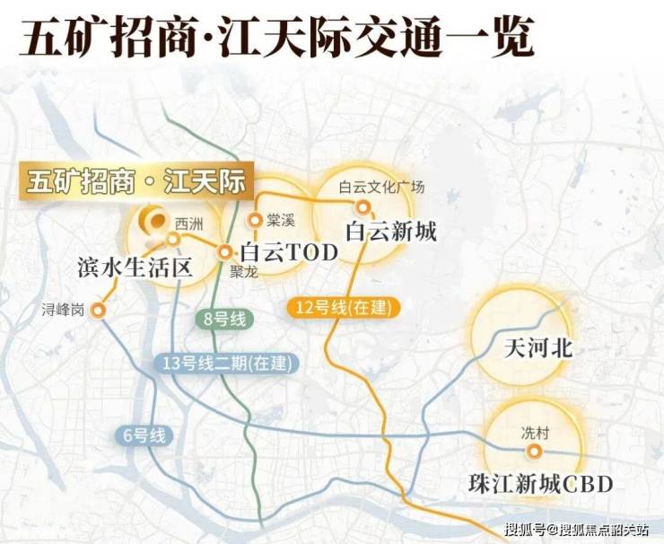 五矿招商江天际,由五矿地产、招商蛇口和广州地铁三大实力开发商联手打造,坐落于广州市白云区广海路槎头站上盖TOD项目。作为湾区新岸(罗冲围)片区的重点开发项目之一,它不仅享有得天独厚的地理位置——紧邻珠江,还拥有便捷的交通网络和丰富的配套设施,致力于为业主提供高品质的生活体验。