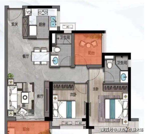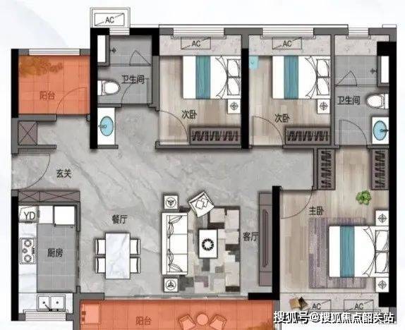 阔绰主卧套房,专享衣帽间与L型飘窗
