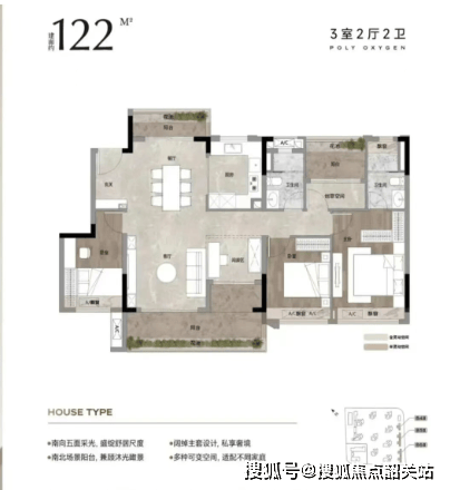 122平方米户型:宽敞舒适,适合大家庭居住,拥有更高的私密性和居住体验。