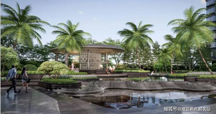 中央轻氧草坪:约2000㎡中央草坪搭配模拟潮汐律动的假日水庭,营造自然舒适的社区环境。