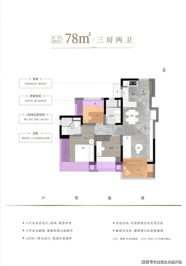 得房率:通过飘窗、阳台半赠送设计,实际得房率达85%-88%。