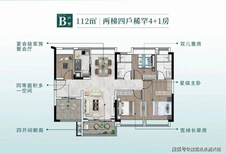 珠实·嘉悦湾目前在售户型为89-112㎡,主要分为四房二卫和五房二卫两种户型。其中,89㎡户型设计为四开间朝南,动静分区合理;112㎡户型则更进一步,能够做到五房两卫的设计,南北对流,采光通风效果极佳。
