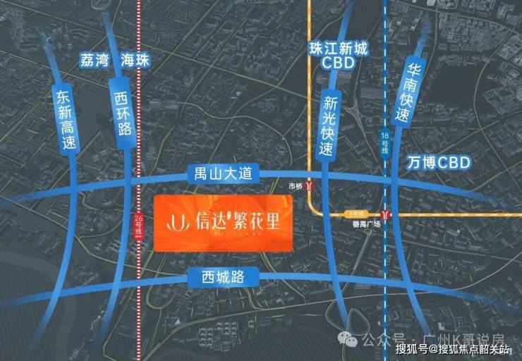 临近两大主干道——禺山大道、西环路,接驳东新高速可达荔湾/海珠,接驳新光快速可达万博CBD、珠江新城CBD,通达全城!