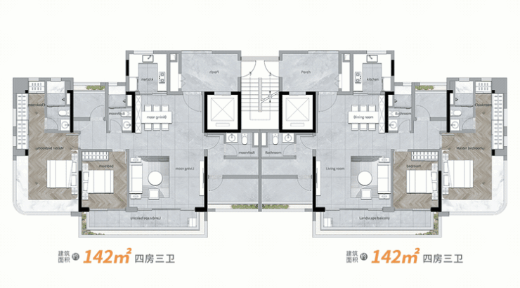 产品面积:86㎡、115㎡、135㎡、142㎡
