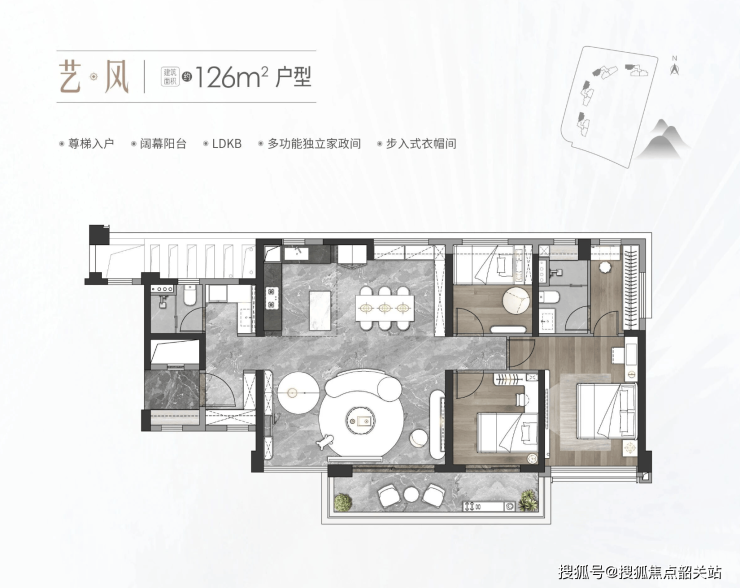 1. 126㎡四房二卫户型:该户型定位为进阶改善型户型,整体布局方正合理、南北通透,空间利用率高,无浪费面积。四房设计,满足二孩家庭或三代同堂的居住需求,每一个房间都配备独立采光面,阳光充足、视野开阔。客厅采用大面宽设计,搭配景观阳台,可俯瞰社区园林与白云山景,彰显生活格调;主卧为套间设计,配备独立卫生间与衣帽间,保障业主私密性,同时连接景观飘窗,推窗见景,享受静谧休憩时光。厨房采用U型设计,动线合理,操作便捷,兼顾实用性与舒适性;客卫干湿分离,提升使用体验,满足家人日常使用需求。该户型性价比突出,是进阶改善家庭的优选之作,目前清盘阶段可享受一房一议专属礼遇。