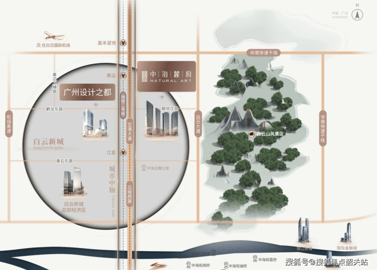 2. 区位价值对比:中海麓府坐落于设计之都核心板块,依托白云【1358】发展战略,享受板块产业发展红利,未来区域发展前景广阔,同时紧邻白云新城核心区,无缝衔接城央繁华。对比竞品,天健云山府、万科臻山府、云山壹品位于白云新城核心区,但距离设计之都板块较远,无法直接享受产业发展红利;云筑上品虽位于设计之都板块,但区位优势不及中海麓府,距离地铁站、核心商业配套较远,交通与生活便捷度不足。中海麓府的核心区位,实现了产业红利与城央繁华的双重加持,资产保值增值潜力更大。
