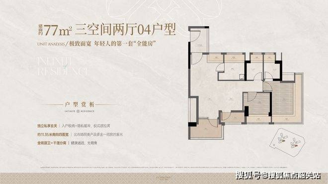 产品纯粹性:全四房起步社区+82%-85%高得房率+保利物业,区域内唯一纯改善新盘,圈层价值突出。