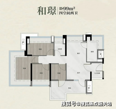 主力户型集中在89–122㎡,全部为新规全南向设计。89㎡做到四开间朝南,客厅开间达3.4米,L型阳台连接X空间,可灵活改造为洗衣区、茶室或健身角;99㎡户型实现真正南北对流,转角玄关避免视线直穿,私密性更好;112㎡边户则是类四叶草布局,四个卧室分布在三个角落,互不干扰,LDK大方厅也够敞亮。值得一提的是,这些户型得房率普遍较高,部分还能通过阳台拓展使用面积。