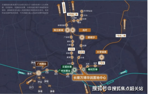 『华润置地·长隆万博悦府』坐落于长隆万博CBD核心地带,紧邻地铁3号线、7号线和18号线交汇的汉溪长隆站,步行距离仅约500米。此外,距离地铁18号线南村万博站也仅有约1.2公里的距离。便捷的轨道交通网络使得居民可以轻松抵达珠江新城等重要商圈,享受都市生活的便利。同时,项目周边还有全国线路最密集、亚洲最繁忙的高铁站——广州南站,直线距离仅为6公里左右,进一步提升了出行的便捷性。