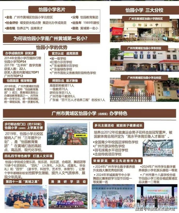 怡园小学是建于1989年老牌名校,于1994年评为广东省首批省一级小学,早于东风东小学、华阳小学,怡园小学是整个黄埔区第一梯队的好学校,考上奥校的人数连续三年排名全区第一。