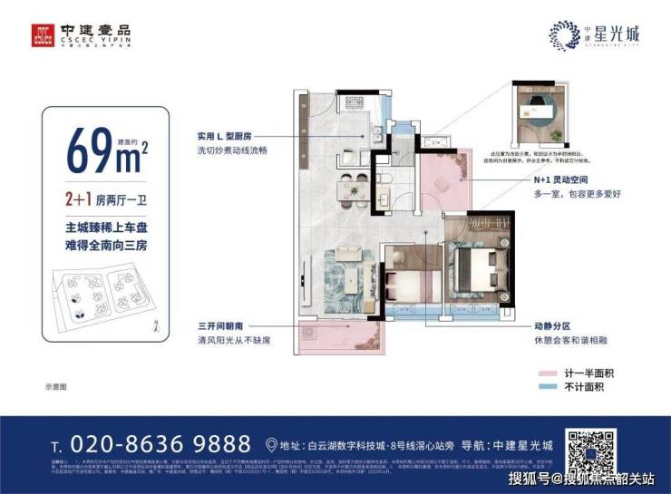 69㎡全南向三房:白云湖板块最低总价上车户型!三开间朝南,3.2米开间阳台,动静分区合理,实用率高达94%,比市场同面积户型多出8㎡使用空间,适合年轻家庭或投资客。