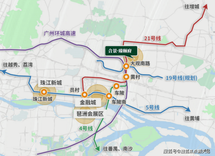 合景·臻颐府所在的天河智慧城智谷板块,拥有便捷的五维立体交通网络。自驾车可通过多条主干道快速连接珠江新城、智慧城及金融城等核心区域,并通过白云机场、广州南站实现与其他城市的无缝对接。公共交通方面,距离地铁21号线智慧城站约1.5公里,该站是全球首座AI智慧车站,提供刷脸过闸和语音购票服务;地铁4号线黄村站约2公里,贯穿南北广州主城动脉;规划中的地铁19号线大观南站也将进一步提升区域的通达性。此外,双城际轨道——广佛东环线和穗莞深城际轨道正在建设中,将直通白云机场和广州南站两大交通枢纽,为居民提供更加便捷的出行体验。
