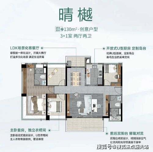 卓越·晴翠府主力户型为76-130㎡三至四房,精准覆盖刚需上车与家庭改善需求,且在空间利用上极具巧思: