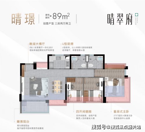 89㎡三房四开间朝南:全屋通透,采光极佳,使用效率高;