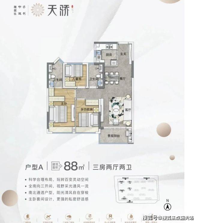 户型设计主打实用。主力户型 88 - 110㎡的三至四房,方正实用,部分户型带景观阳台或飘窗,空间布局合理。不过得房率因为板楼设计和风雨连廊计入公摊,部分户型相对低一些,像 110㎡户型公摊较大。但整体上,户型设计能满足不同家庭需求,全南向和户户南北通透的设计,采光通风好,居住起来还是很舒适的。