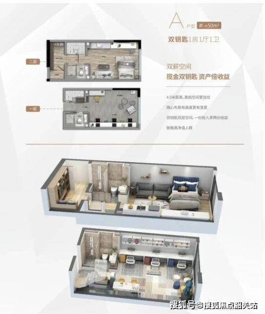 45㎡两房:上下分区清晰,客厅挑高,卧室私密,兼顾自住舒适与投资回