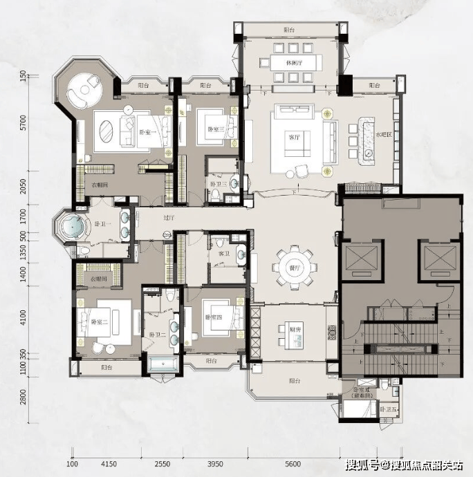 核心户型亮点纷呈,极致奢享:① 空间尺度震撼:层高3.57米,厅堂宽达9.5米,临江外飘休闲厅宽5.8米,客厅、餐厅、水吧、休闲厅四大生活场景总面积超125㎡,极致开阔的空间感彰显顶豪身份;② 多元户型选择:264㎡五房两厅五卫,优雅艺术领地,满足高端家庭基础居住需求;317㎡六房两厅六卫,奢华艺术美宅,适配多代同堂大家庭;398㎡五房三厅五卫(特A星蕴檀意/星语浪漫),带休闲厅、水吧,可灵活调整为六房,含工人套房,极致生活与身份双重彰显;1604㎡超阔户型,湾区唯一400方江岛超极大平层,打造家族传世领地;③ 全球奢材精装:全屋采用法国尼斯木、朝鲜天空之境奢石、土耳其阿玛尼棕奢石三大超极奢材,淡雅浅褐主调尽显奢中带雅;④ 功能分区完善:超33㎡宴会厅,承载几代人美味幸福时光;超极厨房配备全套GAGGENAU嘉格纳厨电、Bertazzoni博塔桑尼烤箱一体灶等顶级品牌;超极主卧带开放式衣帽间与经典八角窗,延展无限视野;世界级卫生间全球严选奢石与名牌洁具,为舒适高定。