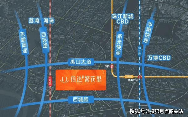 自驾:项目门口连接禺山大道,通达东新高速和新光快速路,15分钟可达万博CBD,30分钟内触及海珠区和荔湾区。