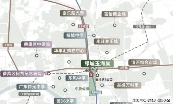 项目为地铁上盖住宅,无缝衔接番禺广场站E出口,实现轨道交通零距离接驳。绿城玉海棠汇聚多条地铁线路,包括3号线、18号线、22号线以及规划中的17号线,其中18号线和22号线为高速地铁,时速可达160公里,30分钟即可直达珠江新城、琶洲及南沙核心区域。自驾出行方面,项目通过亚运大道、番禺大道快速通达全城,但高峰期番禺大道可能拥堵。交通网络的多维度覆盖,实现了轨道与道路的双重便利,既方便日常通勤,也为城市生活与资产保值提供了有力支撑。
